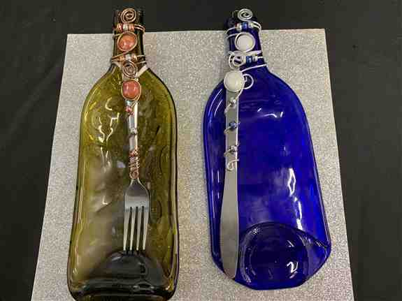A Very Vine Creation, LLC offers a wide variety of beautiful hand-decorated lighted wine bottles available in green, blue or stone finishing as well as different colored glass marble beads, (red, purple, blue, orange and yellow) Each bottle comes with a 20 strand of x-mas lights and it makes a wonderful gift. We offer "pressed" wine bottle serving trays available in various styles, single, trays and double trays, clocks all hand decorated with various colored glass beads and all items are hand-wired wrapped with artisan wire. Each tray comes with matching utensils.Need a gift for the hard to buy for person? How about our home-made Wine Jellies available in Moscato, Sangria, Merlot and Cabernet.