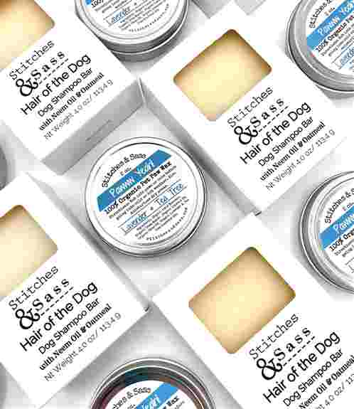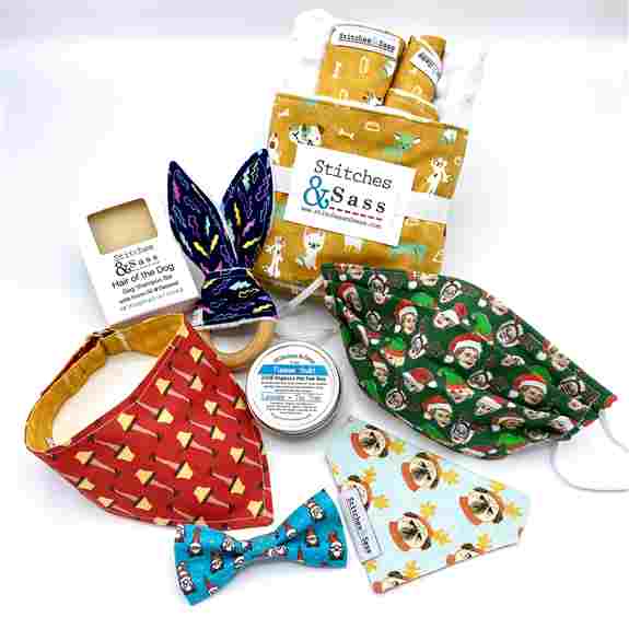 For pets, they make reversible & adjustable bandanas, bow ties and catnip kicker toys. They also offer grooming products such as organic paw wax and a dog shampoo bar.